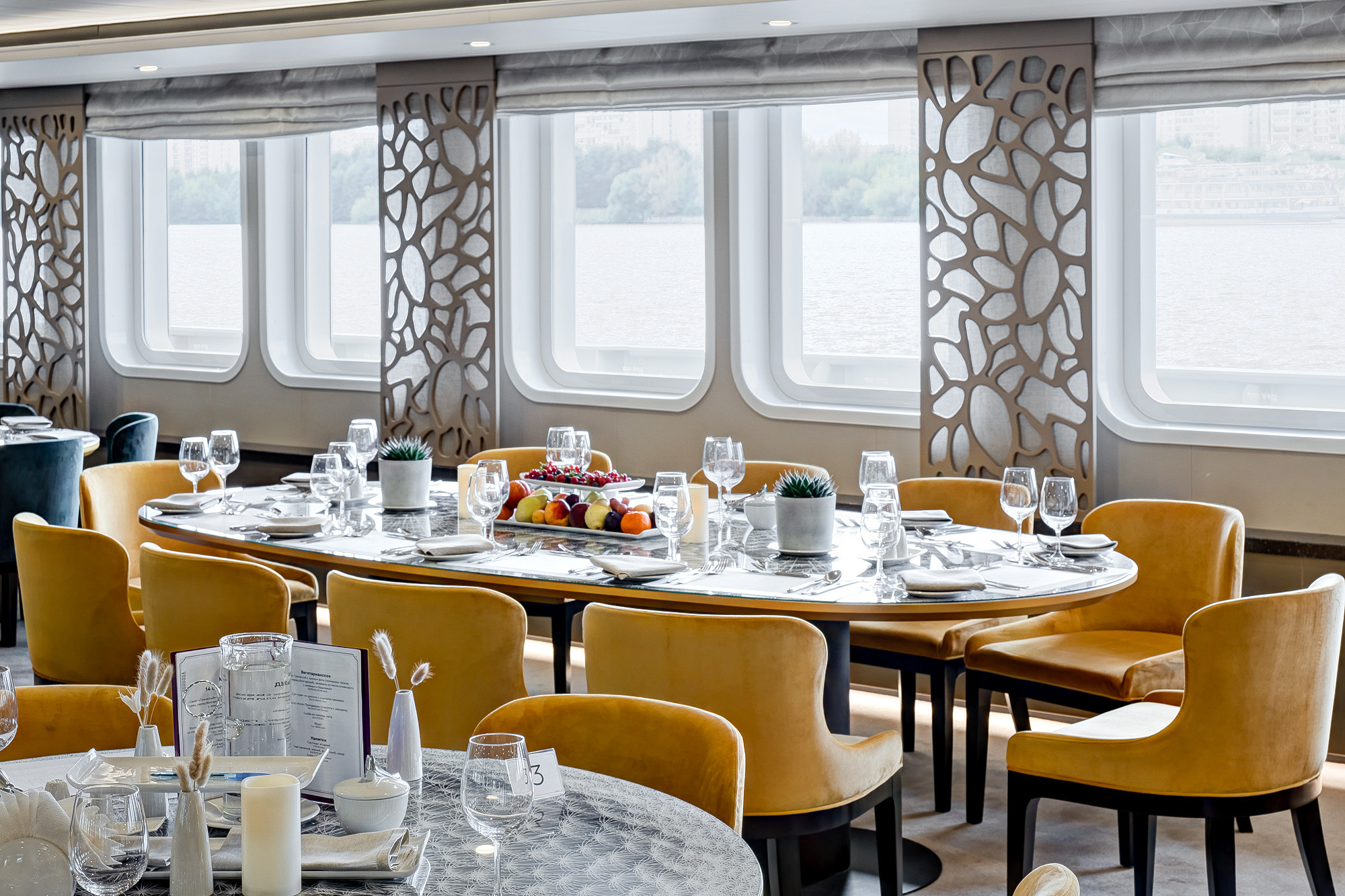 The staterooms onboard Vodohod’s ships are designed with great attention to detail, making your stay not only comfortable but aesthetically pleasing. All cabin categories have their own en-suite bathroom, a wardrobe, double beds or a queen bed, AC, sockets, TV, and radio for internal news and updates during the cruise. Higher-class rooms have lounge areas and private balconies.