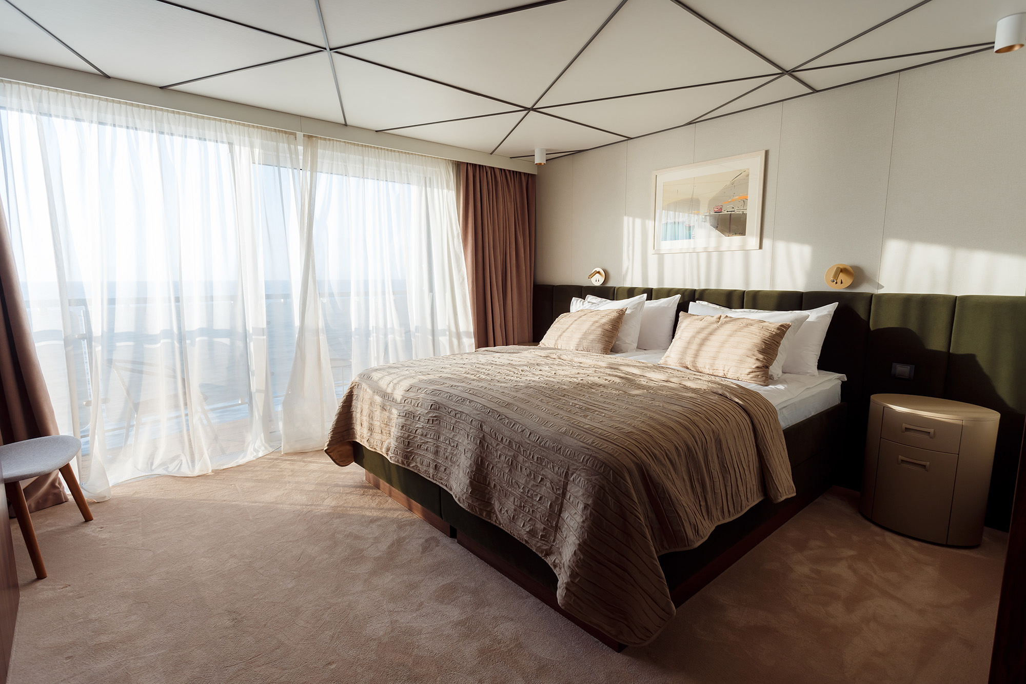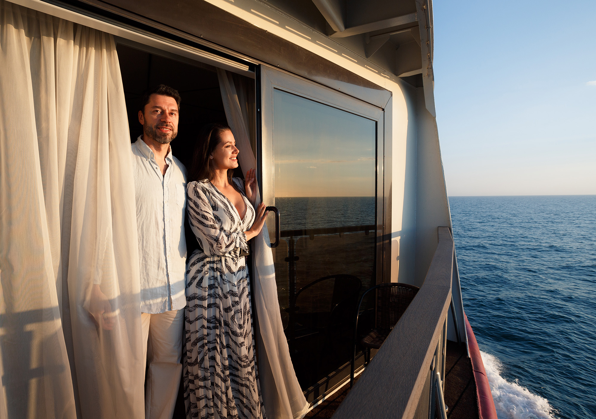 A balcony lets you admire the views and sights along the ship’s route, have more photo opportunities, and catch the sun rising and setting above the water. The in-route experience is richer compared to looking from a regular cabin window and more private than going on deck to the common areas.