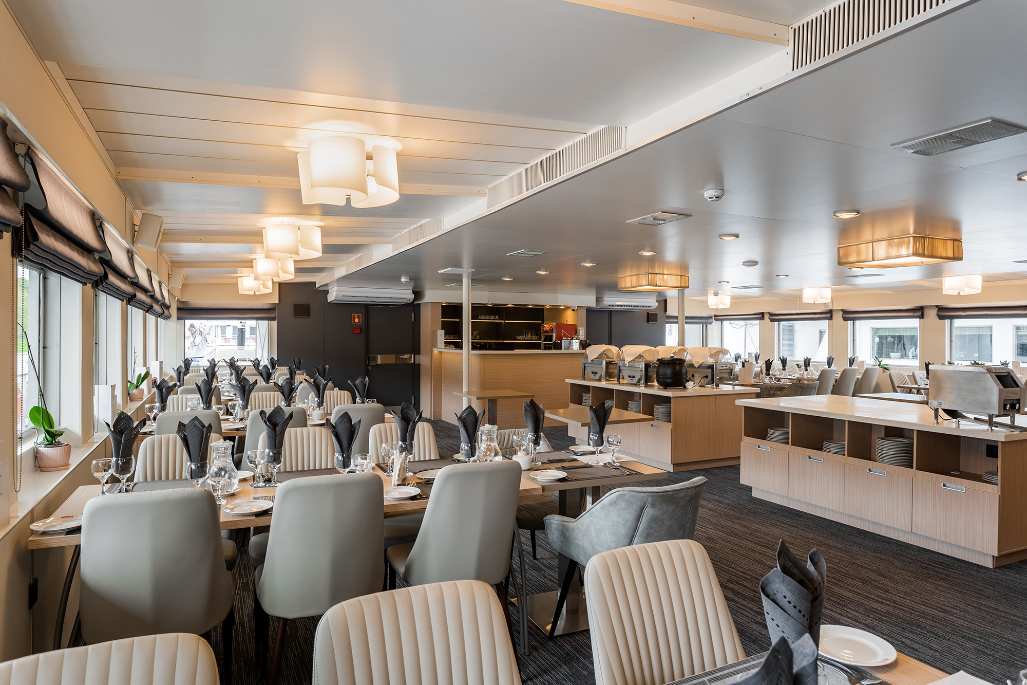The Maxim Gorky, named after the Russian writer, is a 4-deck ship built in Austria in 1974 and fully refurbished to a luxurious 5 star level for the 2020 season. It is the first and the only cruise ship to take guests along Siberia’s Yenisei River. The interior design has been inspired by the rugged Siberian landscape seen out of every window. Facilities include a wine library and a Siberian beer bar.