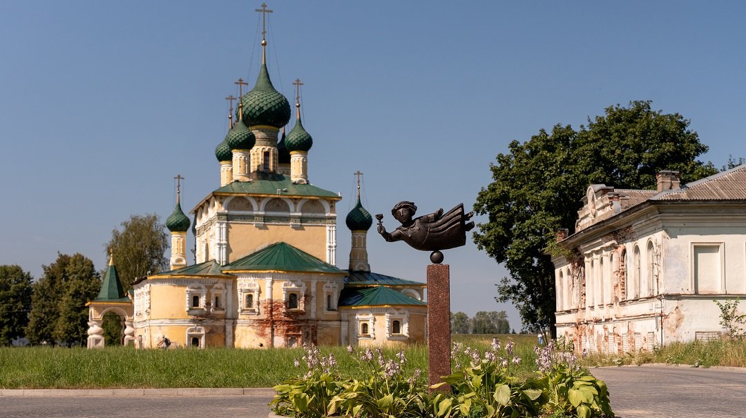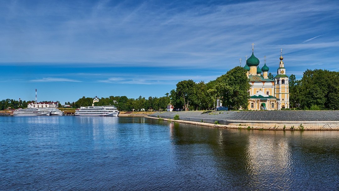 Uglich, one of the oldest cities in Russia that became part of the Moscow Principality back in the 14th century. It has a Kremlin and the Church of Tsarevich Dmitry featuring a unique 18th century fresco depicting the tragic death of the Tsar's son. Its interesting sightseeing attractions also include the Transfiguration Cathedral and the Epiphany Monastery.