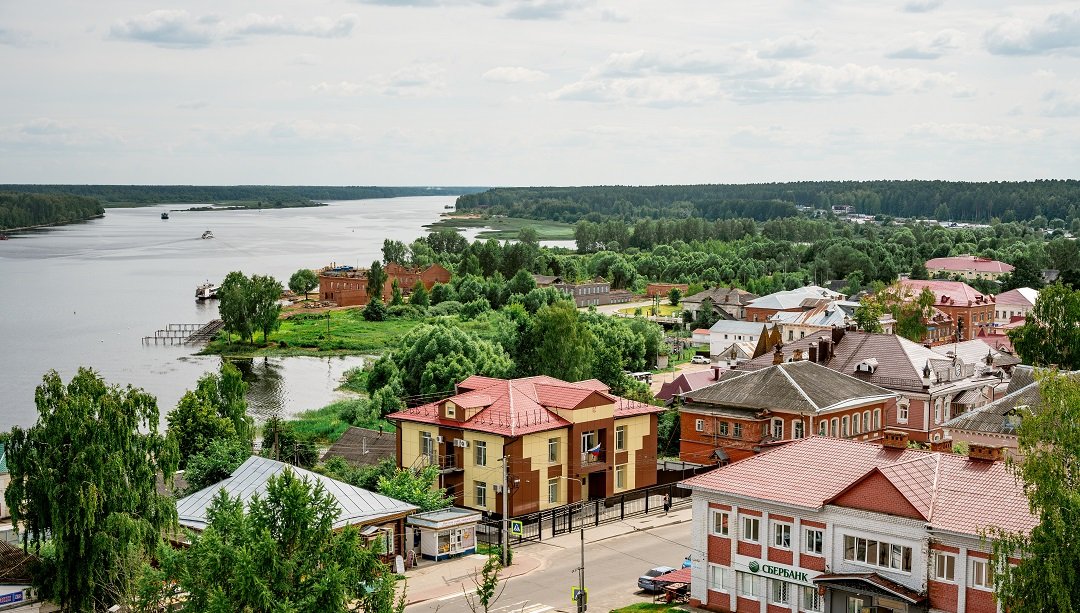 Myshkin, a former district fair trade center, picturesque and original. Attracting crowds of tourists every year, today's Myshkin is a museum town of the Russian provinces that features well-preserved old merchant buildings and exemplifies regular life-style. It hosts the estate of millionaire merchant T.V. Chistov with a two-story mansion, a museum of Russian felt boots, an old mill and, last but not least, the Assumption Cathedral.