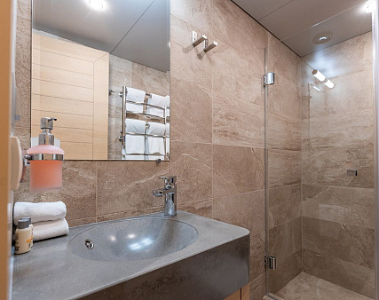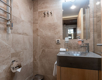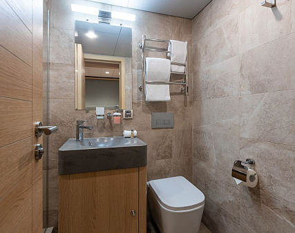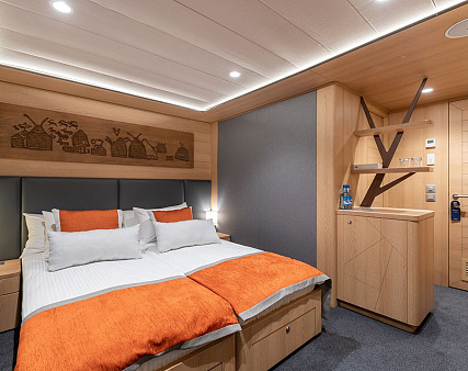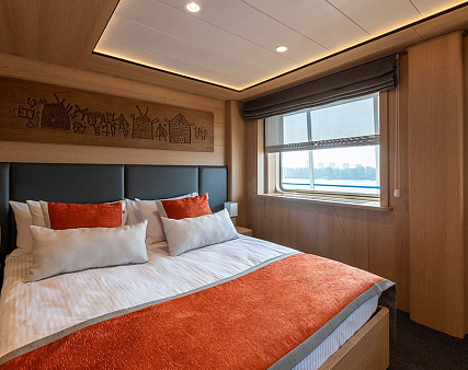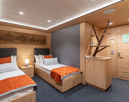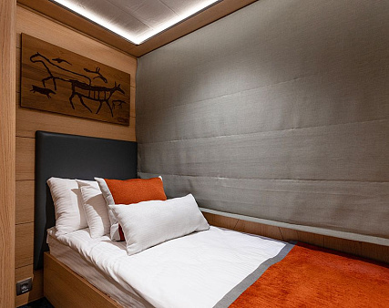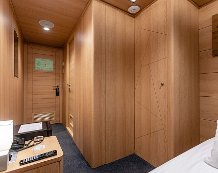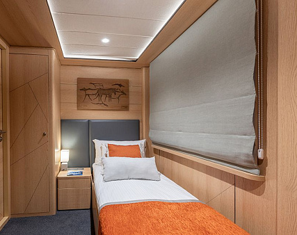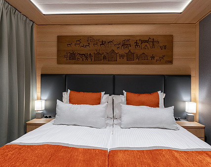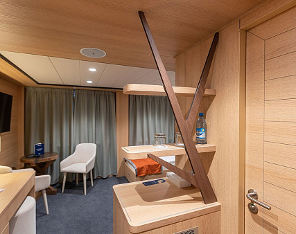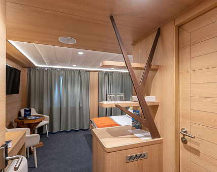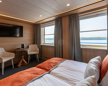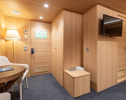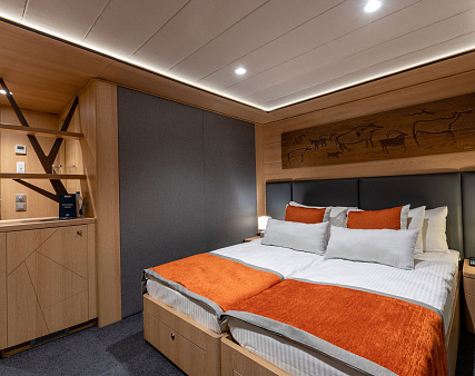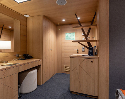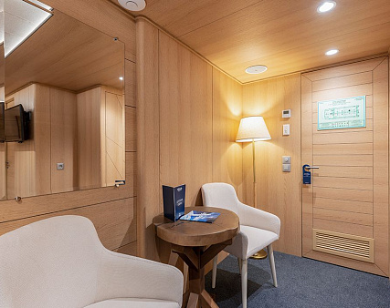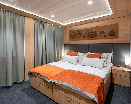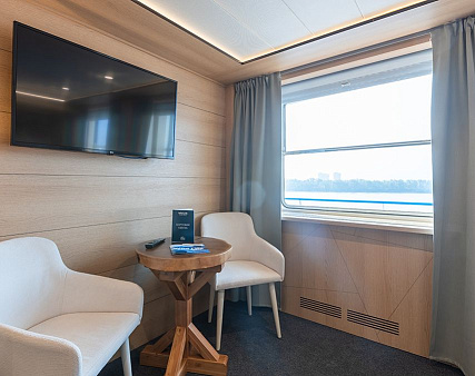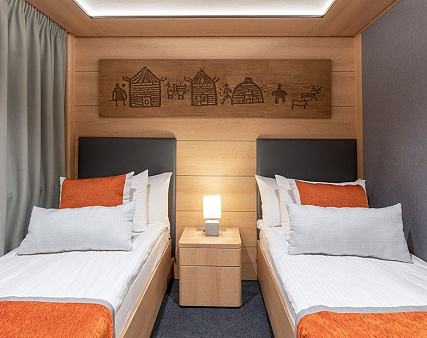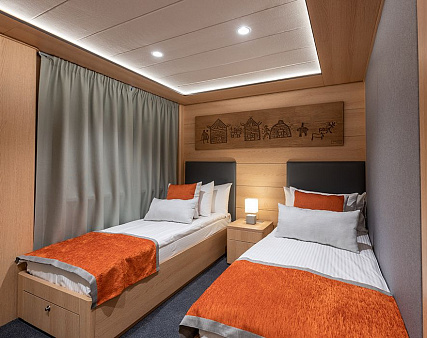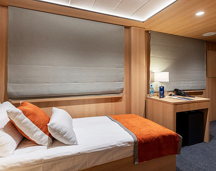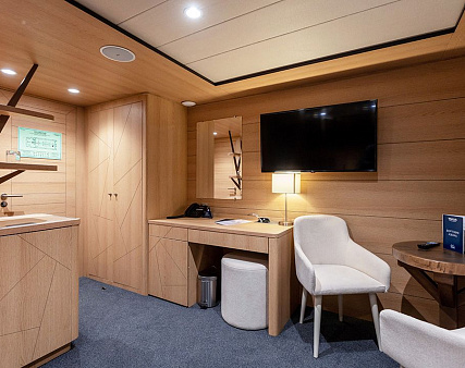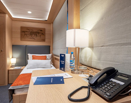 Enjoy your privacy in authentic Siberian-inspired atmosphere. Stateroom is equipped with private facilities, AC, wardrobe, 220V sockets, TV, radio, telephone, safe, hair dryer, minibar.