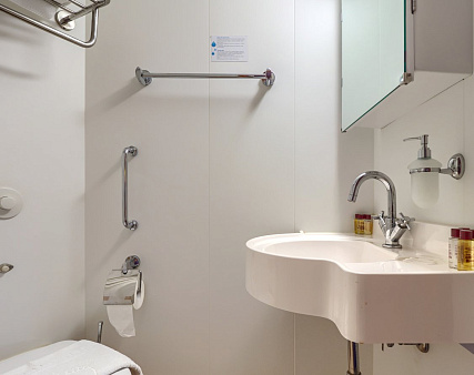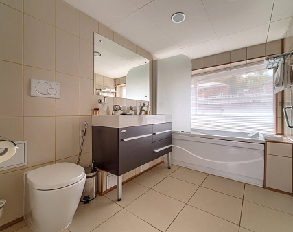 Suite is decorated in modern style and equippped with AC, wardrobe, bedside tables, console mirror, chair, 220V sockets, hairdryer, safe, fridge, TV and radio.