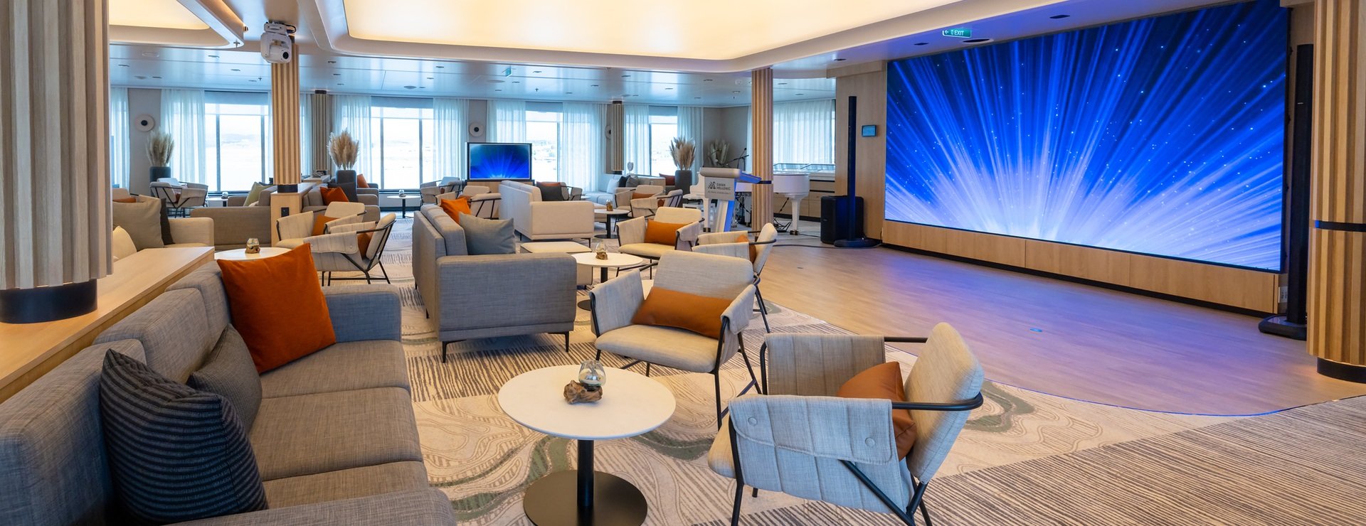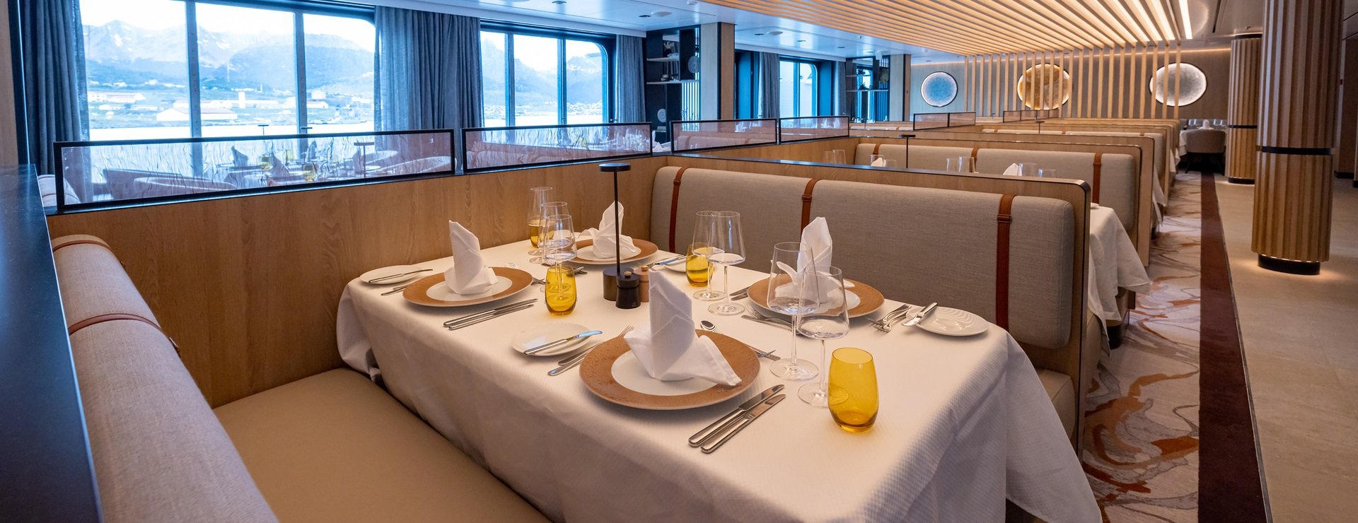 — Камерность и эксклюзивность. Всего 152 гостя могут разместиться в 76 просторных каютах и люксах, что создает атмосферу приватного клуба. Вас обслуживает экипаж из 120 человек, включая экспедиционную команду гидов, ученых и лекторов. Соотношение почти 1:1 гарантирует персонализированное внимание и сервис высочайшего уровня.