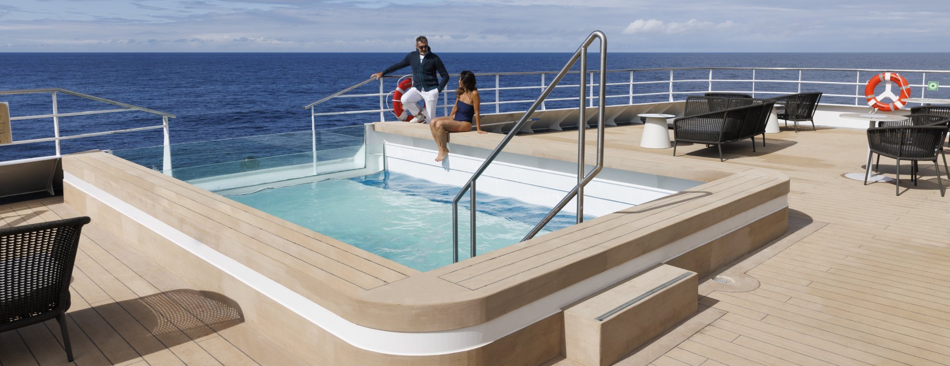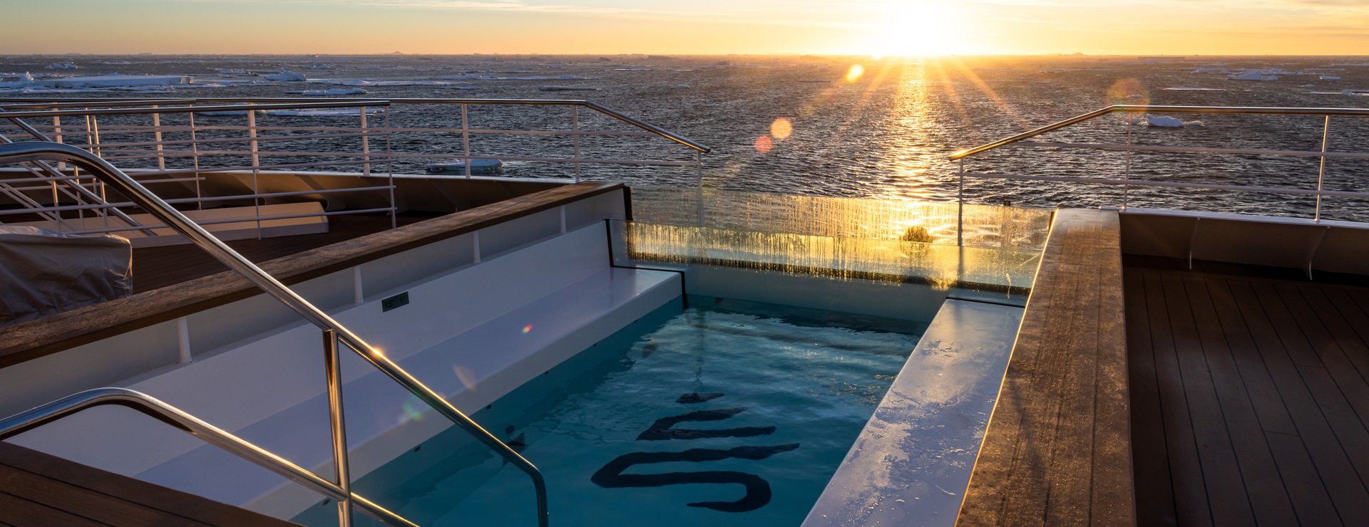 — Непревзойденный уровень комфорта. Здесь исследовательский дух гармонично сочетается со всем, на чем основан безупречный отдых. На борту к услугам гостей предлагаются тренажерный зал, спа-центр с панорамной сауной, ресторан, клубный лаунж с высокой кухней и гриль-бар на открытой палубе у подогреваемого инфинити-бассейна.