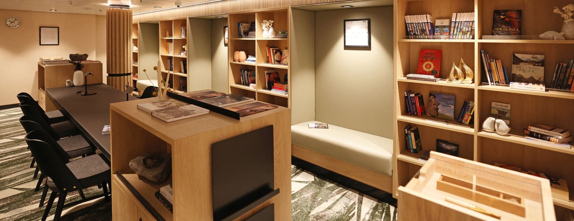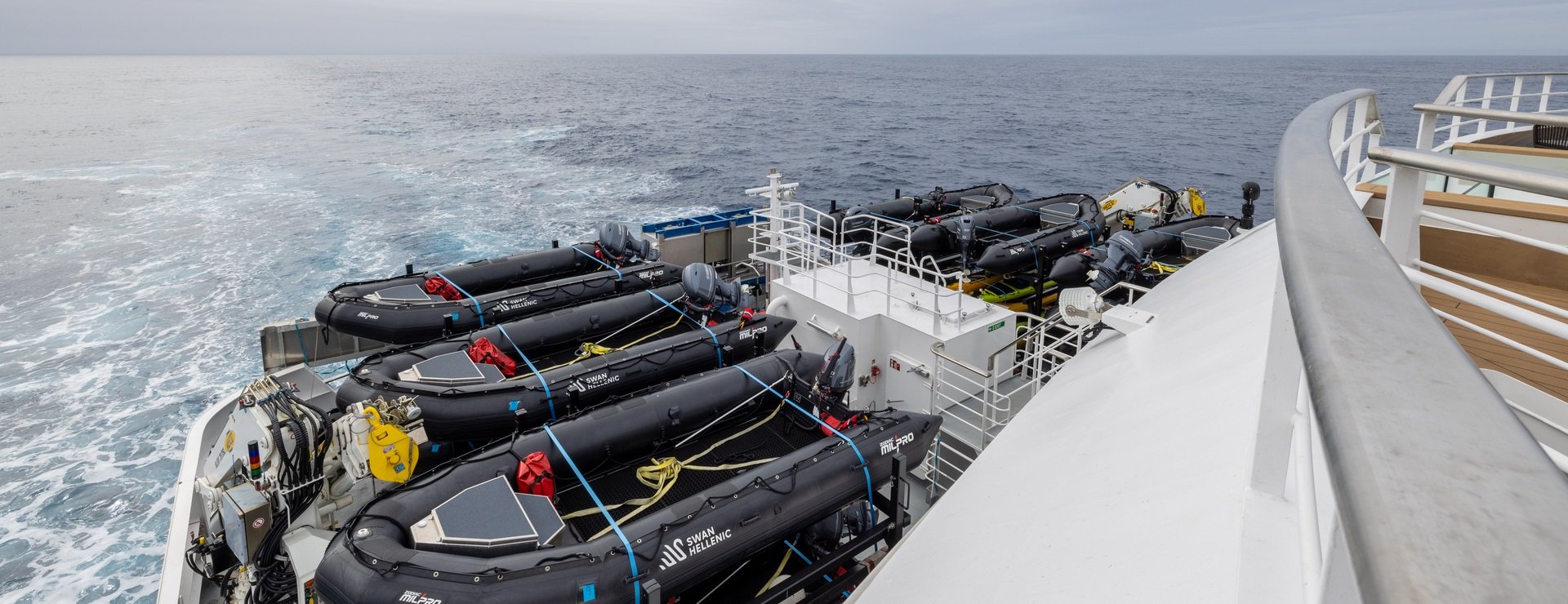 — Оснащение для экспедиций. На борту вас ждет все, чтобы ощутить себя путешественником-исследователем, — флотилия лодок Зодиаков для высадок, каяки и экспедиционная лаборатория, библиотека с тематической литературой и панорамный лаунж для лекций экспертов.