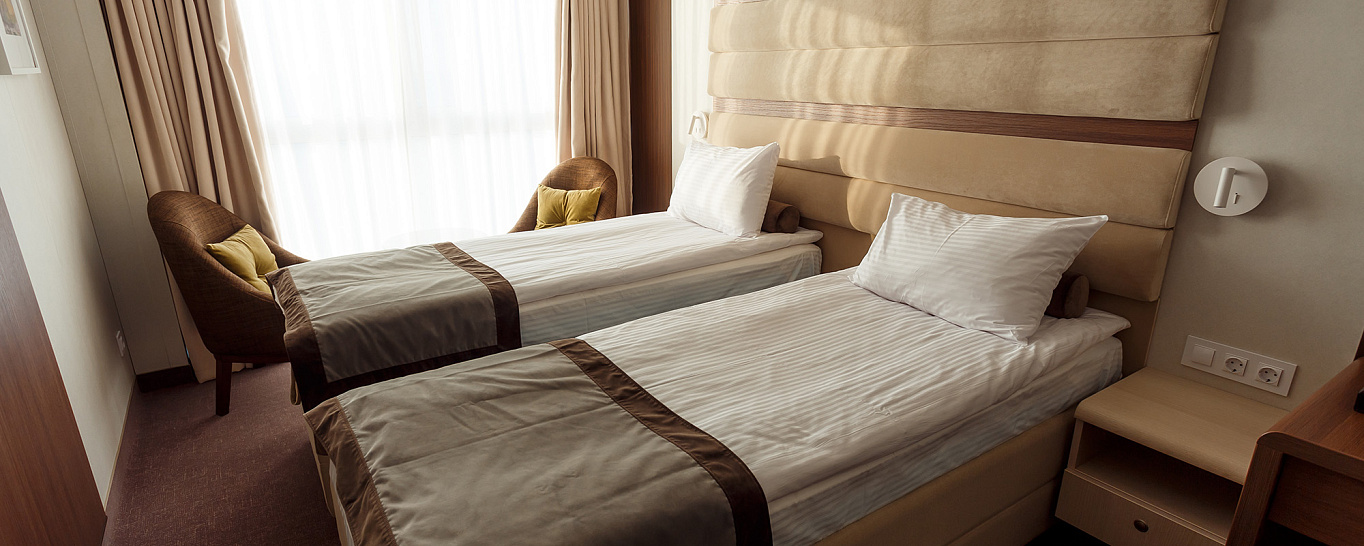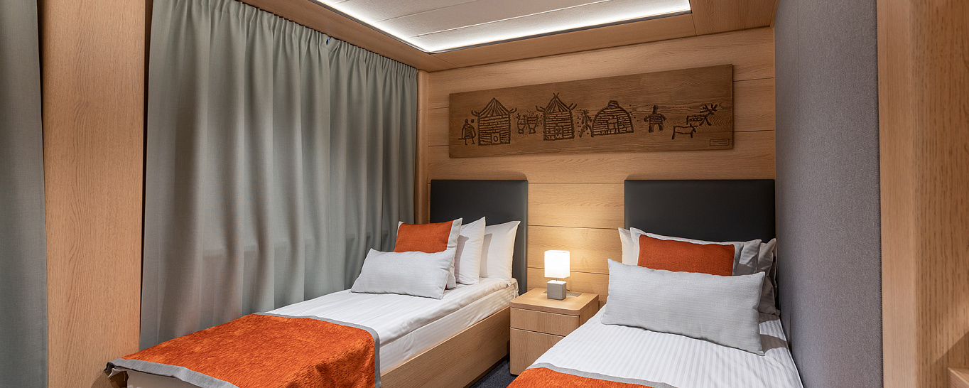 The staterooms onboard Vodohod’s ships are designed with great attention to detail, making your stay not only comfortable but aesthetically pleasing. All cabin categories have their own en-suite bathroom, a wardrobe, double beds or a queen bed, AC, sockets, TV, and radio for internal news and updates during the cruise. Higher-class rooms have lounge areas and private balconies.