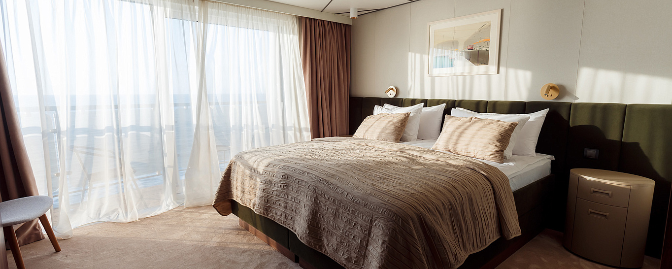 A balcony lets you admire the views and sights along the ship’s route, have more photo opportunities, and catch the sun rising and setting above the water. The in-route experience is richer compared to looking from a regular cabin window and more private than going on deck to the common areas.