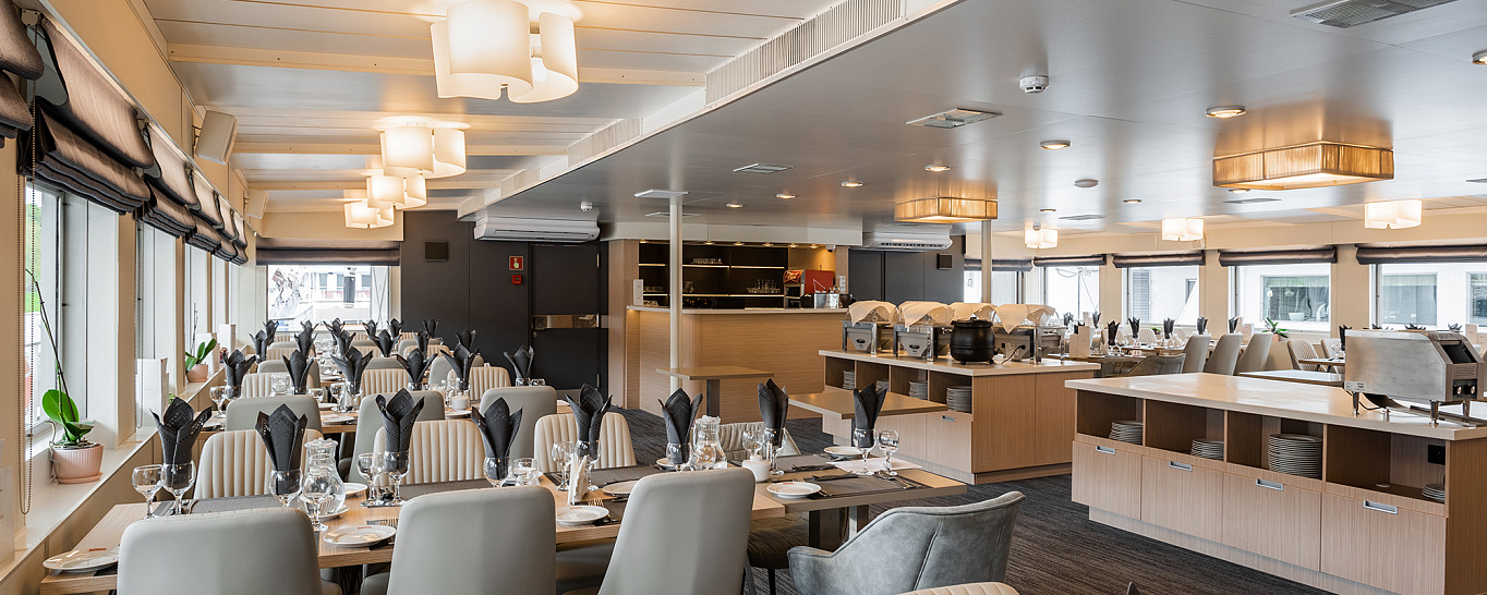 The luxurious Mustai Karim is the newest addition to the fleet and has been sailing since 2020. Named after the illustrious poet and playwright, the ship combines advanced cruising technology with 5* hotel luxury to create a river cruising experience like nothing else. Entertainment onboard the Mustai Karim is designed to offer guests an experience of authentic Russian history and culture.