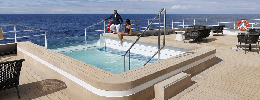 Каюты с балконом: Просторные номера площадью 25 м² с собственным балконом (5-6 м²), откуда открывается потрясающий вид на океан.